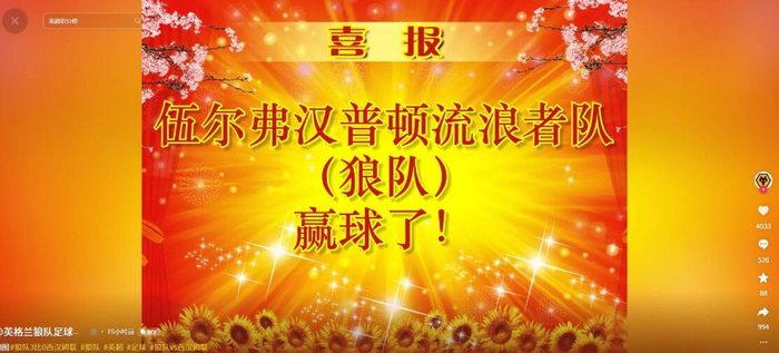 赛后狼队中文官媒也发布喜报,庆祝球队终于在联赛过半后取得了赛季首胜。