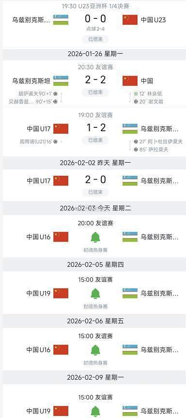 乌兹别克斯坦这是真要来复仇了!U23亚洲杯淘汰赛击败乌兹别克斯坦后,根据最新足协安排,3月底,两队原班人马又要在西安再战一场,要知道,这已经是中国各级国字号与乌兹别克斯坦26年以来的第9场比赛了,这真是跟这支世界杯球队杠上了!