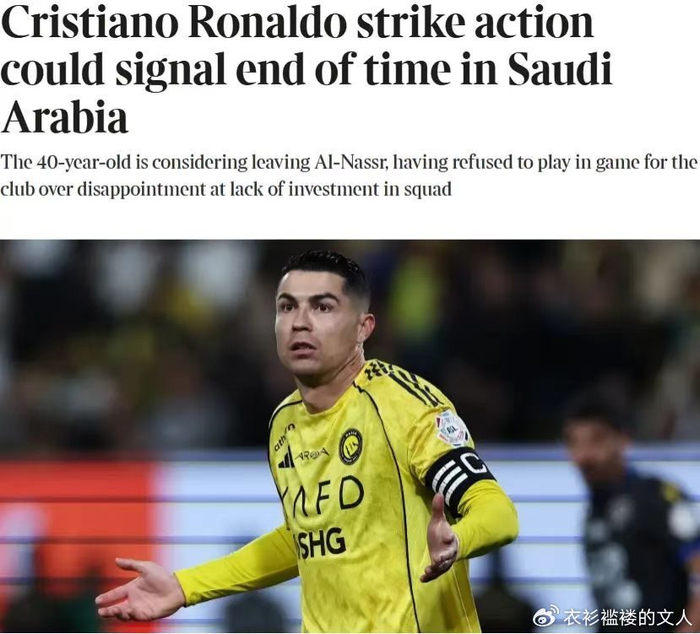 日前,C罗与利雅得胜利俱乐部的关系,成了外界关注的焦点,从C罗拒绝为俱乐部出战开始,关于C罗和俱乐部未来的猜想就充斥了各大媒体的首页,甚至在刚刚有媒体曝料称,在这个夏天C罗将离开这里,去其他的地方继续自己的绿荫梦。