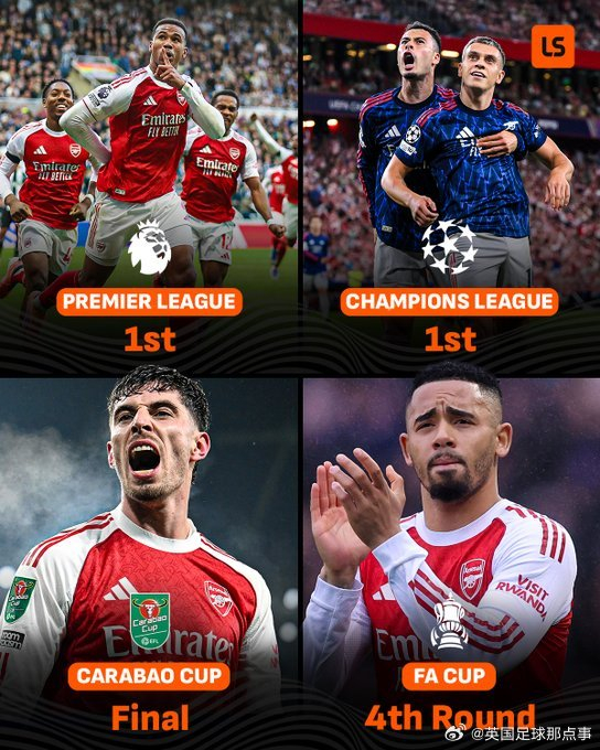 阿森纳四线争冠,联赛杯晋级决赛英超领跑