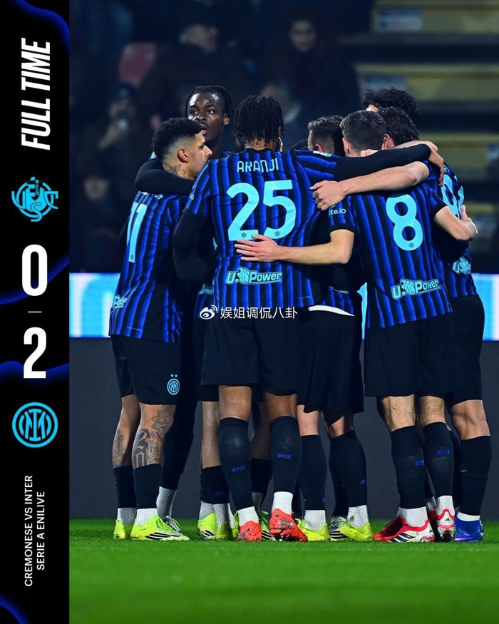 意甲第23轮,国米客场2-0战胜克雷莫内塞,各项赛事三连胜,先赛一场8分领跑。迪马尔科助攻劳塔罗头球破门,杰林斯基世界波。