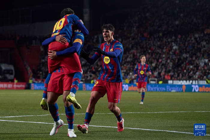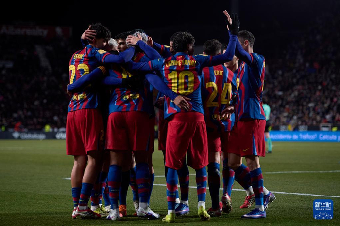 2月3日,巴塞罗那队球员阿劳霍庆祝进球。 当地时间2月3日,在西班牙阿尔瓦塞特举行的西班牙国王杯四分之一决赛中,巴塞罗那队客场2比1战胜阿尔瓦塞特,晋级半决赛。 新华社发 2月3日,巴塞罗那队球员庆祝进球。 当地时间2月3日,在西班牙阿尔瓦塞特举行的西班牙国王杯四分之一决赛中,巴塞罗那队客场2比1战胜阿尔瓦塞特,晋级半决赛。 新华社发 2月3日,阿尔瓦塞特队球员贝纳维乌(下)和巴塞罗那队球员坎塞洛在比赛中拼抢。 当地时间2月3日,在西班牙阿尔瓦塞特举行的西班牙国王杯四分之一决赛中,巴塞罗那队客场2比1战胜阿尔瓦塞特,晋级半决赛。 新华社发 2月3日,巴塞罗那队球员庆祝进球。 当地时间2月3日,在西班牙阿尔瓦塞特举行的西班牙国王杯四分之一决赛中,巴塞罗那队客场2比1战胜阿尔瓦塞特,晋级半决赛。 新华社发 2月3日,巴塞罗那队球员阿劳霍(右)庆祝进球。 当地时间2月3日,在西班牙阿尔瓦塞特举行的西班牙国王杯四分之一决赛中,巴塞罗那队客场2比1战胜阿尔瓦塞特,晋级半决赛。 新华社发 2月3日,阿尔瓦塞特队球员阿瓜多(左)和巴塞罗那队球员马丁在比赛中拼抢。 当地时间2月3日,在西班牙阿尔瓦塞特举行的西班牙国王杯四分之一决赛中,巴塞罗那队客场2比1战胜阿尔瓦塞特,晋级半决赛。 新华社发 2月3日,阿尔瓦塞特队球员普埃尔塔斯(右)和巴塞罗那队球员阿劳霍在比赛中拼抢。 当地时间2月3日,在西班牙阿尔瓦塞特举行的西班牙国王杯四分之一决赛中,巴塞罗那队客场2比1战胜阿尔瓦塞特,晋级半决赛。 新华社发 2月3日,巴塞罗那队主教练弗利克在比赛中。 当地时间2月3日,在西班牙阿尔瓦塞特举行的西班牙国王杯四分之一决赛中,巴塞罗那队客场2比1战胜阿尔瓦塞特,晋级半决赛。 新华社发 2月3日,巴塞罗那队球员德容(左)和阿尔瓦塞特球员卡皮在比赛中争抢。 当地时间2月3日,在西班牙阿尔瓦塞特举行的西班牙国王杯四分之一决赛中,巴塞罗那队客场2比1战胜阿尔瓦塞特,晋级半决赛。 新华社发 2月3日,巴塞罗那队球员亚马尔在比赛中。 当地时间2月3日,在西班牙阿尔瓦塞特举行的西班牙国王杯四分之一决赛中,巴塞罗那队客场2比1战胜阿尔瓦塞特,晋级半决赛。 新华社发