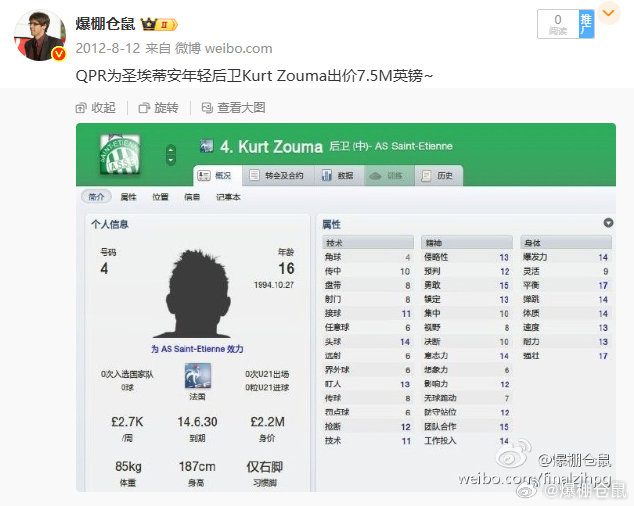 【曾经的身体流大妖】著名记者Santi Aouna:祖马与山东鲁能泰山达成口头协议,签订一份为期一年的合同,并可以选择续约一年,预计这位法国后卫将在未来几天内正式签约。