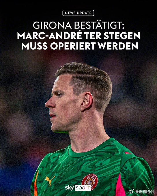 33岁的特尔斯特根在不久前租借到了赫罗纳,仅仅出场两次就遭遇伤病困扰,问题比最初预想的要更严重,手术可能会影响到他参加美加墨世界杯的目标。
