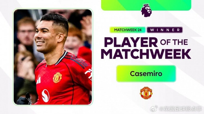 英超第24轮最佳:卡塞米罗(曼联3-2富勒姆)