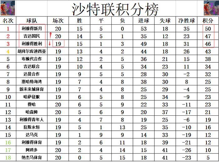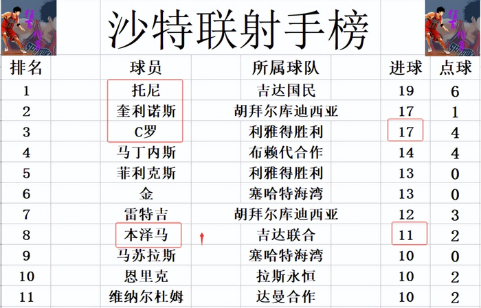 积分榜方面,难怪C罗要郁闷,本泽马一来就造4球,利雅得新月狂胜,他们暂时又将和利雅得胜利的差距拉大到4分。吉达国民先赛赢球后,1分优势将利雅得胜利挤到第3的位置。