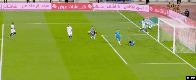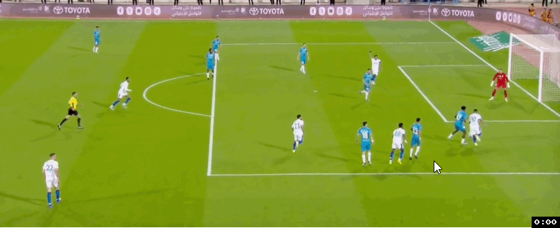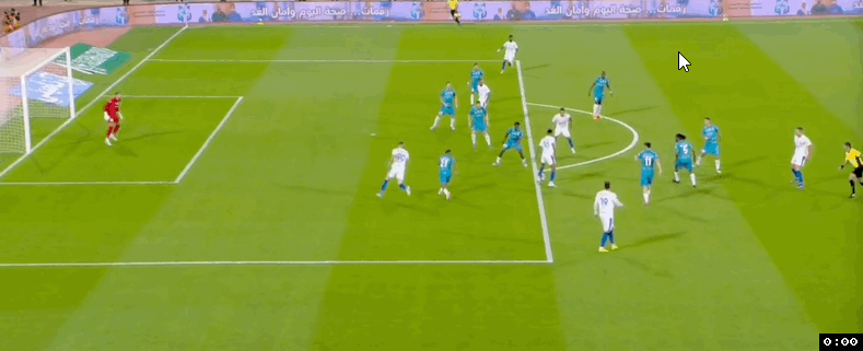 第69分钟,利雅得新月中路快速反击,本泽马禁区弧顶处插上突入禁区获得半单刀良机,本泽马投桃报李也给马尔科姆做了个好球,马尔科姆轻松将球挡入空门,利雅得新月4:0领先。4分钟后阿科多后场还失误送上大礼,马尔科姆断球后突入禁区轻松过掉豪萨维获得单刀机会,马尔科姆无私横传,多萨里将球挡入空门,利雅得新月5:0领先。补时阶段,利雅得新月快速反击,多萨里接球狂奔突到禁区弧顶处获得单刀机会,多萨里挤开回防球员冷静推射得手,利雅得新月将比分锁定在6:0。