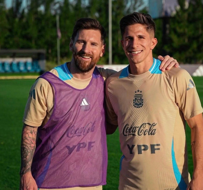 “谁不想与足球史上最伟大的球员一同训练或比赛呢?事实上,能与梅西在一起简直难以置信。对于新加入国家队的球员来说,他的帮助极大。在更衣室里,你能看到他作为领袖的样子,他的举止、他的姿态。他是一位非凡的球员,是史上最佳。能近距离观察他日常训练,看他如何传球或射门,会让人目眩神迷。”
