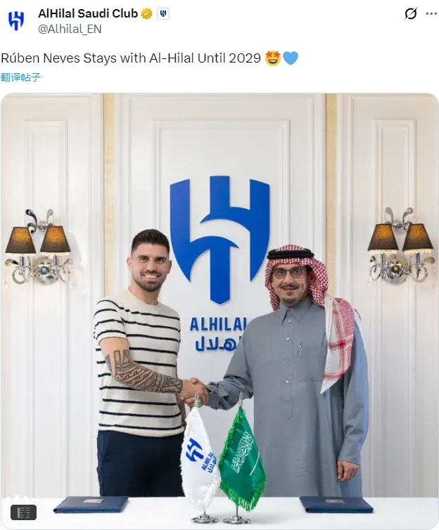 官方:利雅得新月宣布和鲁本-内维斯续约到了2029年,这名中场此前的合同夏天到期。