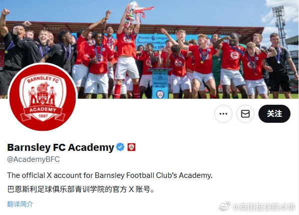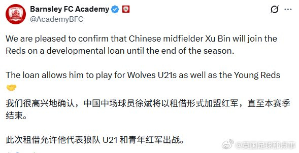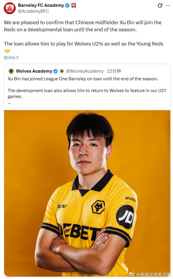 根据官方公告,徐彬加盟的是巴恩斯利青训学院,并不是巴恩斯利一线队。