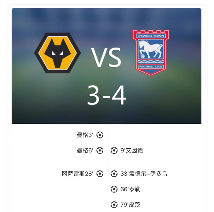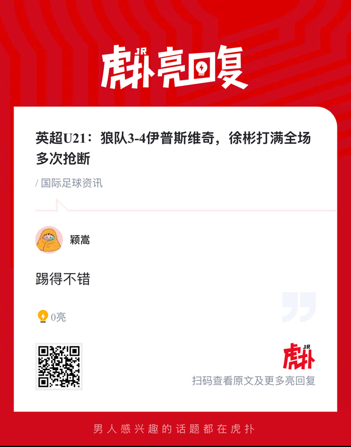 【英超U21:狼队3-4伊普斯维奇,徐彬打满全场多次抢断】上半场安赫尔4分钟内梅开二度,双方上演对攻大战,徐彬积极防守多次完成抢断。下半场泰勒传射,皮茨破门反超比分,徐彬防守表现亮眼,比赛尾段铲球犯规染黄。