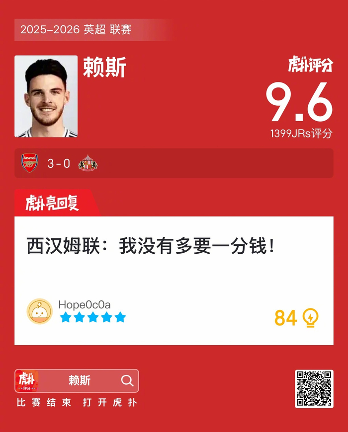 #阿森纳3比0桑德兰#赖斯这场表现,你觉得发挥如何?