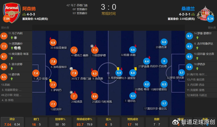 最终,阿森纳3-0轻取桑德兰,先赛的情况下9分领跑英超积分榜。