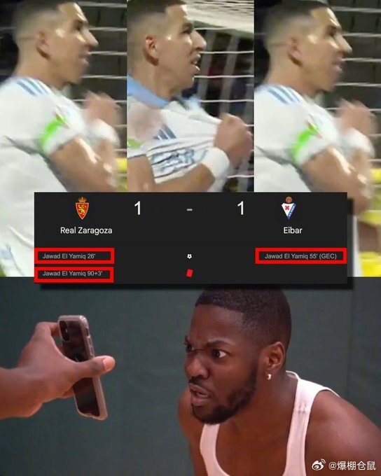 【全场目光向我看齐!】33岁的萨拉戈萨新援亚米克(Jawad El Yamiq)在对埃瓦尔的首秀中,第26分钟破门得分,第55分钟打入乌龙球,本场比赛的两粒进球均出自他,然后第93分钟吃到红牌,完成了精彩的个人全场秀!