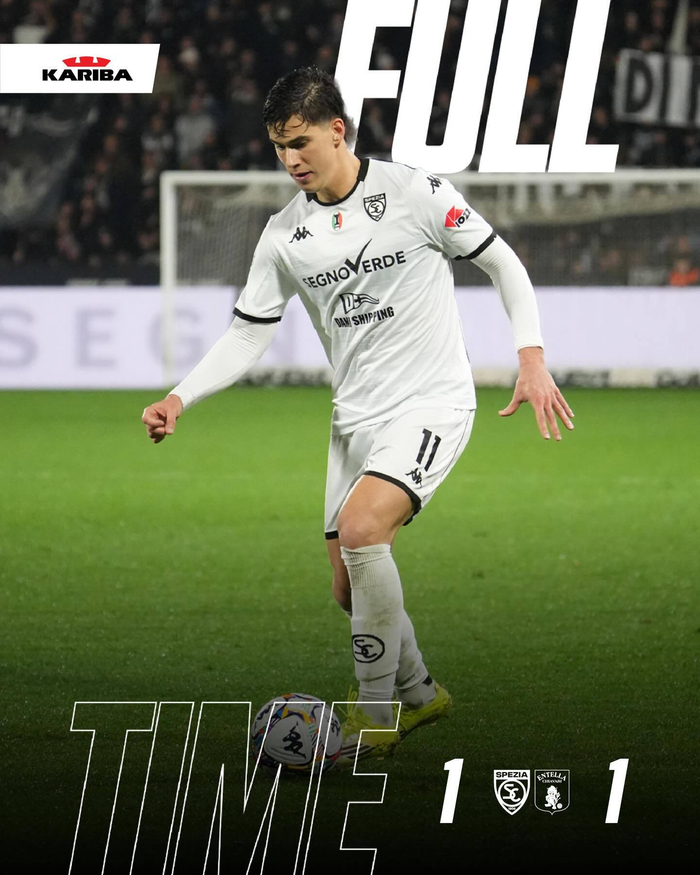 #意乙# 由多纳多尼🇮🇹教练执教的斯佩齐亚主场与维尔图斯恩特拉队1:1握手言和,米兰外租小将科莫托🇮🇹第49分钟替补出场。#ac米兰名宿#