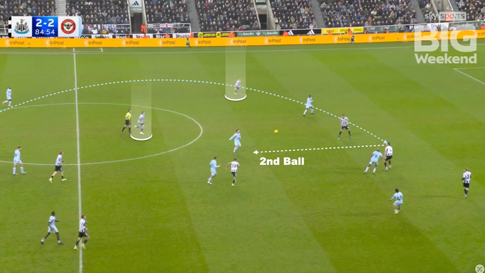 下轮面对直来直去的小蜜蜂,尤其要留意类似这种二点球的场景,前锋和后卫拼一点后下来的球,对阵纽卡这场就是延森拿到这个二点球,马上垫给绝杀的瓦塔拉