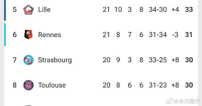 法甲这里今年终于不用关心图卢兹的保级问题了,甚至有机会冲击欧战,目前图卢兹积30分,和白堡同分,净胜球少排名第八,离欧战区排名第六的雷恩有1分的差距,比第五里尔也只少3分,但是图卢兹少赛一场。今年科莫利离开的时候,球队前景暗淡,球迷抗议,似乎要进入黑暗时期,没想到没有科莫利之后,图卢兹一飞冲天,看看赛季最后球队能来到什么位置吧。