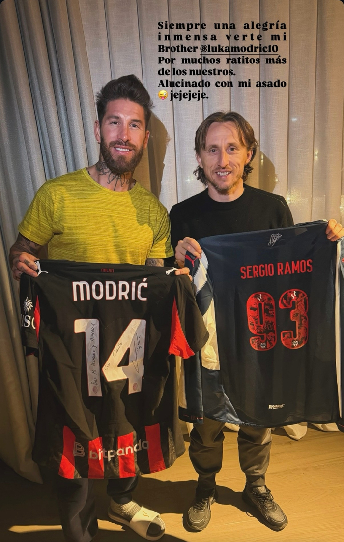 拉莫斯:见到我的兄弟莫德里奇总是很开心。纪念我们许许多多的美好回忆。烤肉也很好吃哈哈哈😜