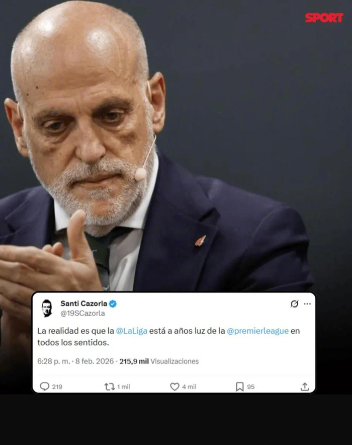 而对于这一决定,皇家奥维耶多中场卡索拉也在社媒发表评论表示:“现实是,西甲在各方面都远远落后于英超。”