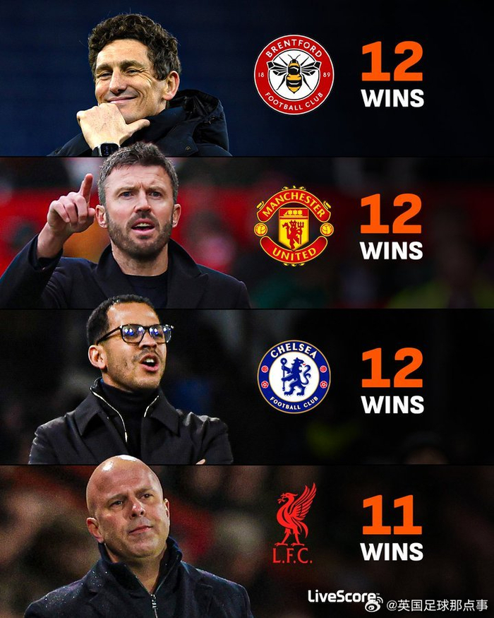 布伦特福德本赛季在英超的胜场数与切尔西和曼联持平,比利物浦多😮🐝