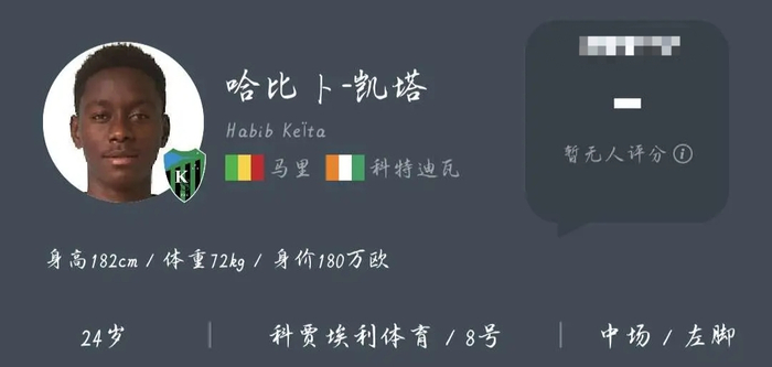 哈比卜-凯塔现年24岁,1米82,72公斤,身价180万欧元,司职中场,由法甲豪门里昂青训出品,曾在里昂一线球队效力2年。2025年9月12日,凯塔以租借的方式加盟土超球队科贾埃利体育,总计出场18次,打进1球,助攻2次。目前,他和科贾埃利体育之间还有4个来月的合同。也因如此,有人提出质疑,他还在租借期,不大可能又转会到其他球队。