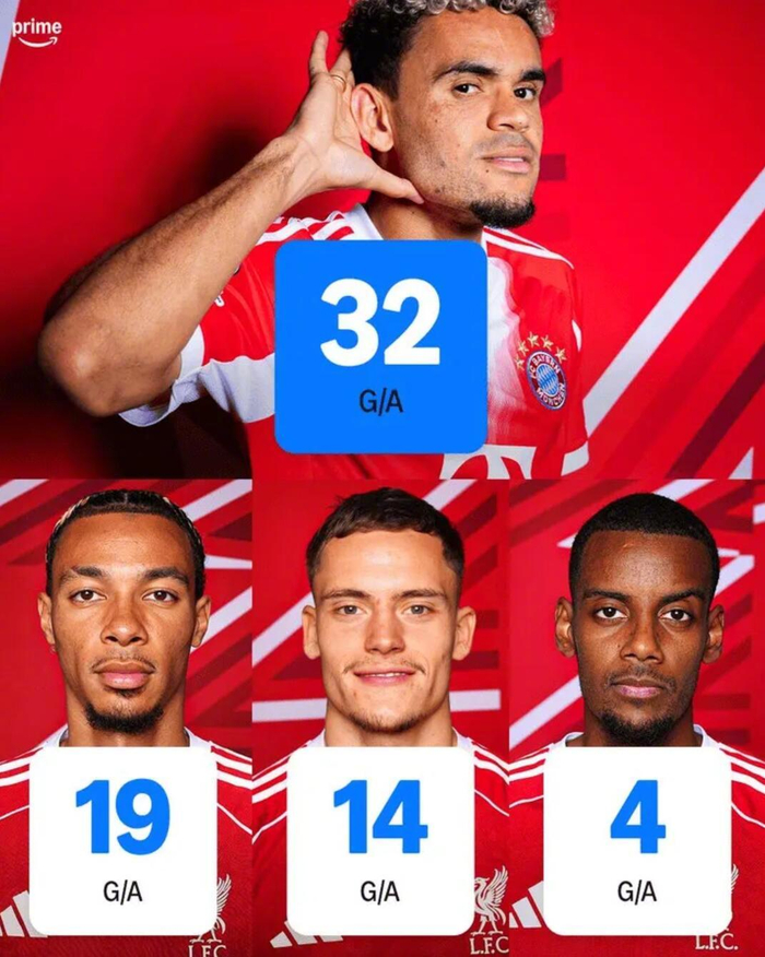 根据国外媒体Prime Video的统计,路易斯-迪亚斯本赛季的参与进球数(32),与利物浦今夏签下的三名进攻型球员的总和(37)相当接近。