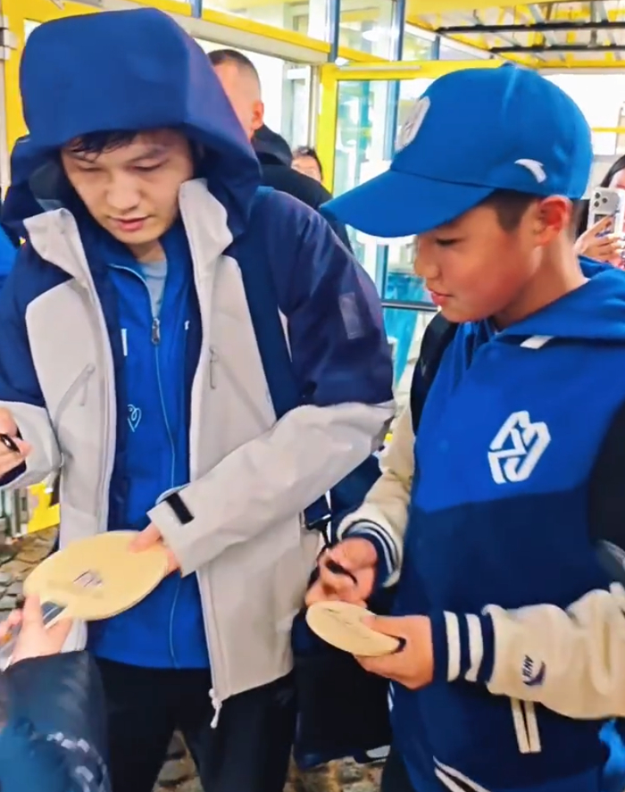 赛后樊振东暖心的为小球迷们签名,没想到萨尔布吕肯也有如此多的中国球迷,他们都用中文跟樊振东寒暄,小胖也是没有一点巨星的架子,他为远道而来的小球迷们一一签名,还跟一些球迷合影留念。