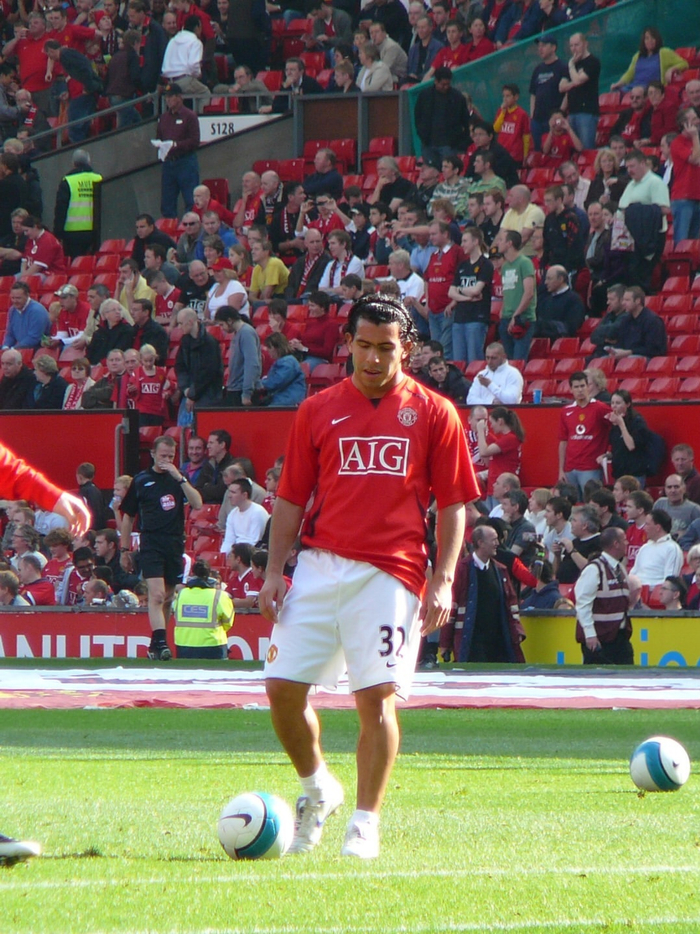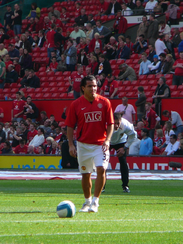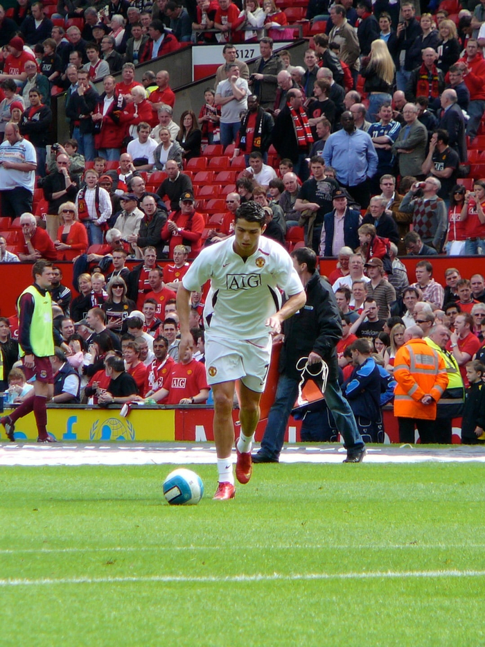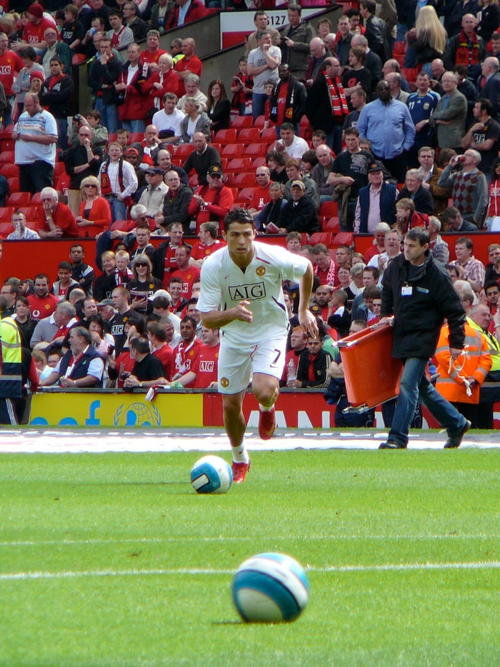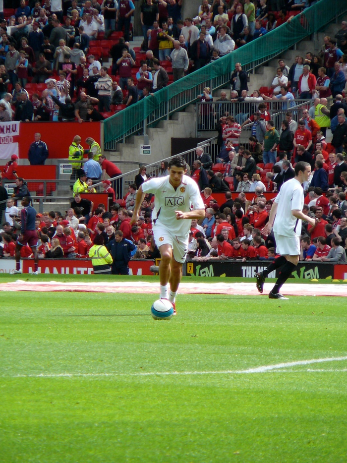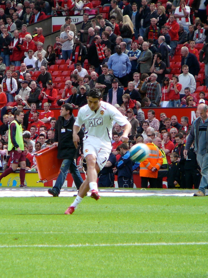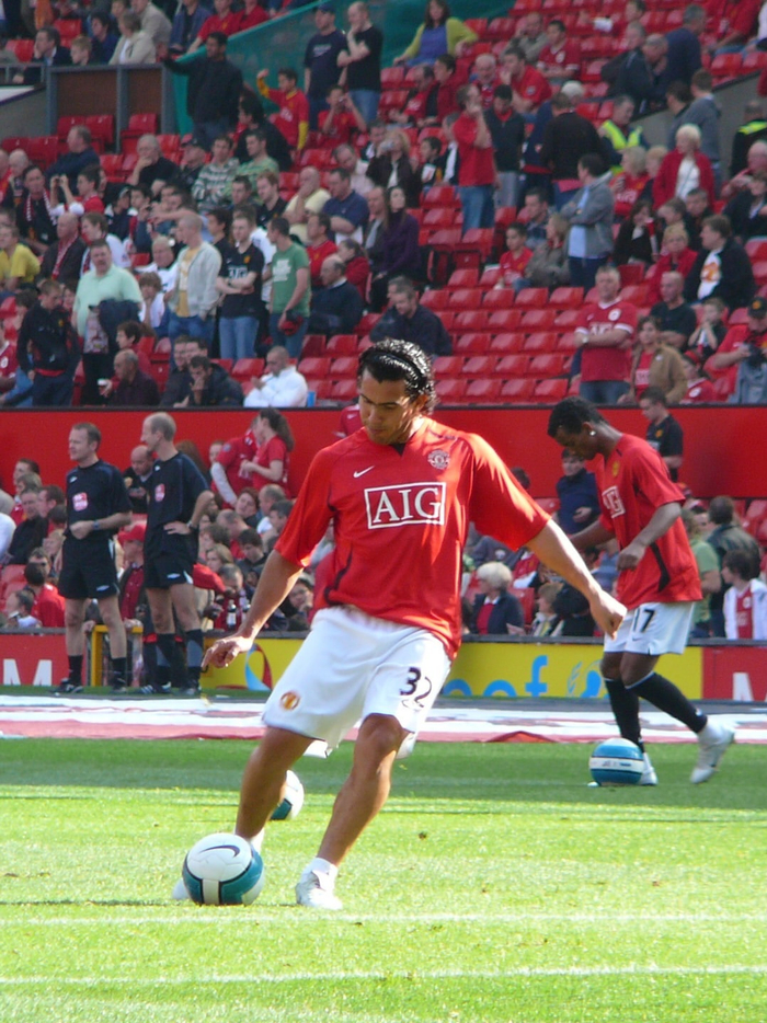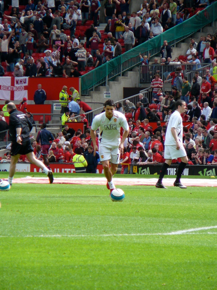克里斯蒂亚诺·罗纳尔多与卡洛斯·特维斯在赛前热身中一同主罚任意球。#c罗##足球#