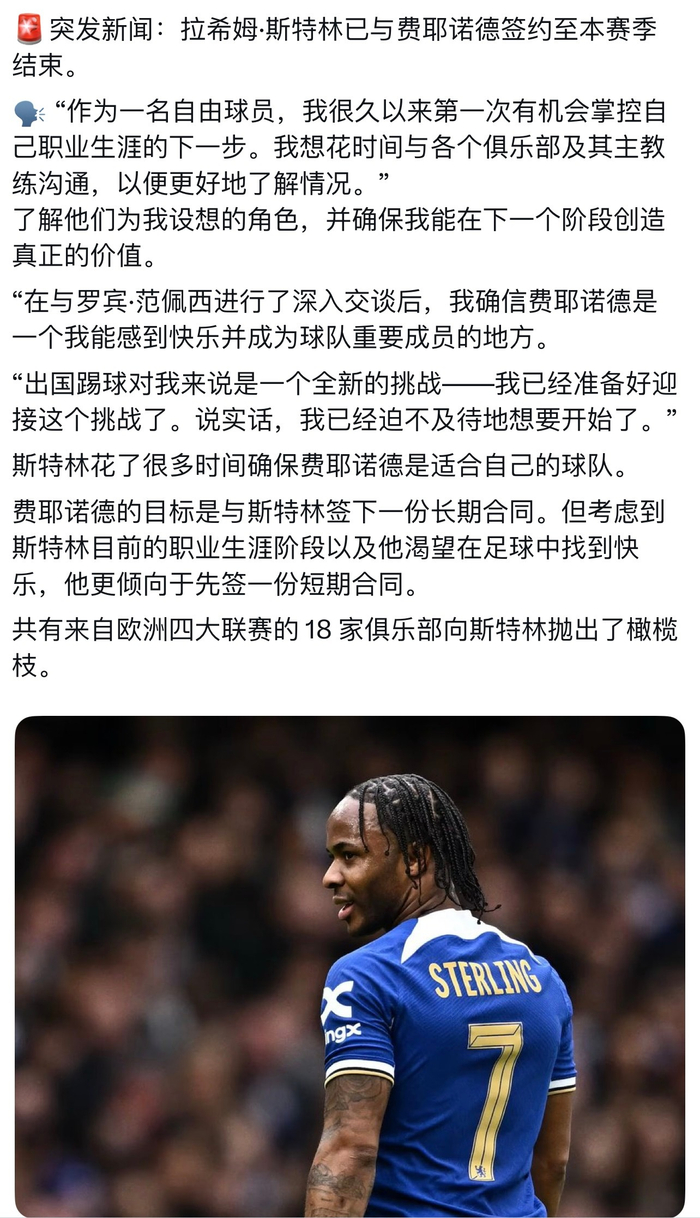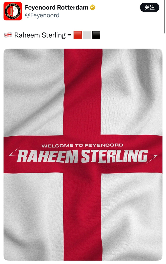 官方:前阿森纳租将斯特林加盟荷甲劲旅费耶诺德📝