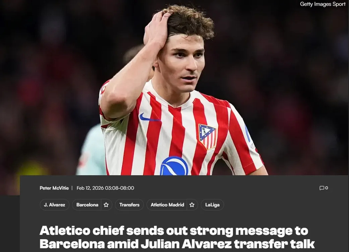 阿尔瓦雷斯最近和巴萨等很多豪门联系在了一起,不过马竞方面坚定地表示,阿根廷球星是非卖品。