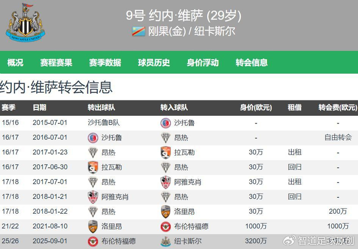 布伦特福德本赛季将维萨压轴卖给了纽卡斯尔,转会费高达5700万欧元,当时球员身价3200万欧元,小蜜蜂算是高价套现维萨。这位现年29岁的民主刚果中锋转投纽卡斯尔之后遭遇了伤病,在本赛季11次英超出场中仅打入1球。