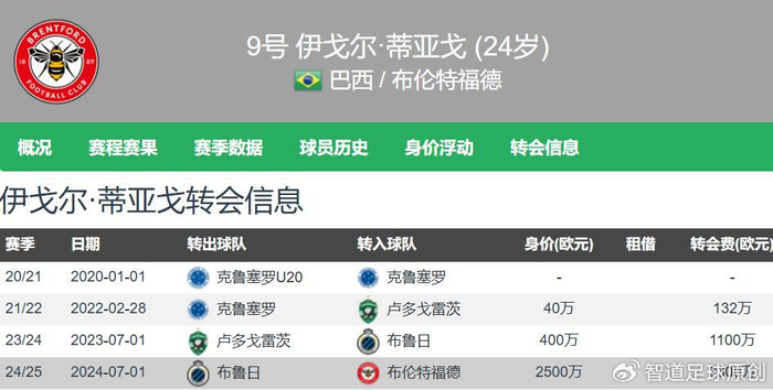 布伦特福德2024年夏窗从布鲁日签下伊戈尔花费了3300万欧元,本赛季小蜜蜂失去了维萨和姆伯莫两大攻击手,伊戈尔成为球队的主火力,本赛季26场英超打入了17个进球,在英超射手榜上仅次于22球的哈兰德排名第二。伊戈尔输出稳定,布伦特福德成绩也很不错,目前排名英超第七,落后欧战区仅有2分。布伦特福德已经与伊戈尔续约至2031年,外加续约一年条款,这算是小蜜蜂对球员本赛季好状态的最佳奖励。