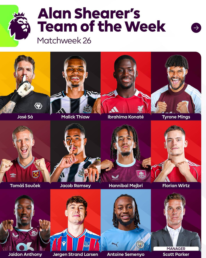 【官方】 #英超# 2025-26赛季英格兰🏴足球超级联赛第26轮最佳阵容。