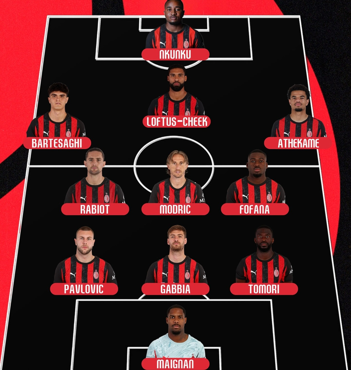 【首发阵容】2025-26赛季#意甲联赛# 第25轮-🔴⚫️米兰客场对阵比萨队(3511);队长:迈尼昂🇫🇷.©️