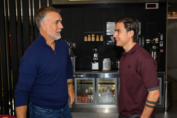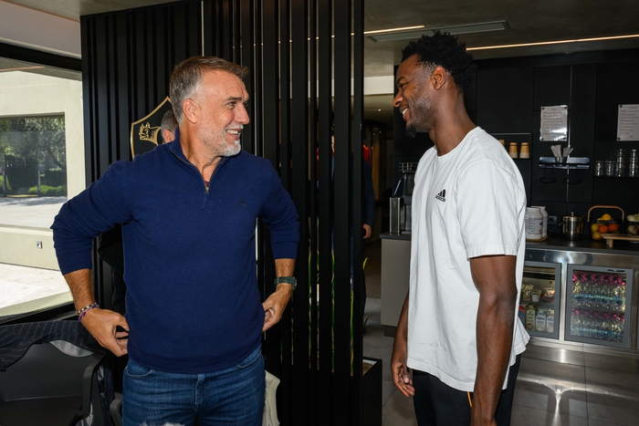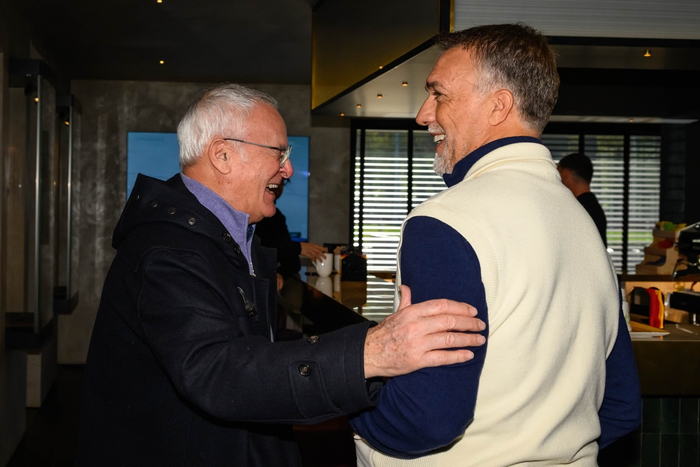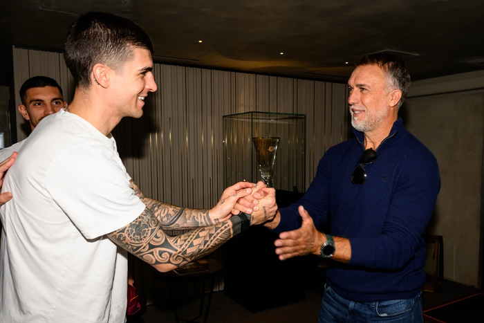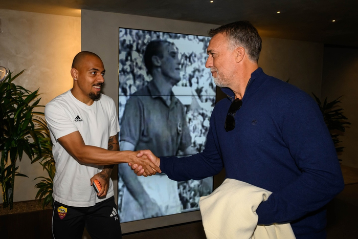【📸】 #意甲联赛# 阿根廷传奇名宿巴蒂斯图塔🇦🇷造访罗马俱乐部。🦁💛❤️