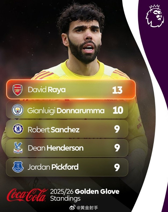#曼城[超话]# 英超已经进入后半程冲刺阶段,金手套奖竞争也是看点之一,英超官推晒出了本赛季门将零封场次榜。具体如下:
