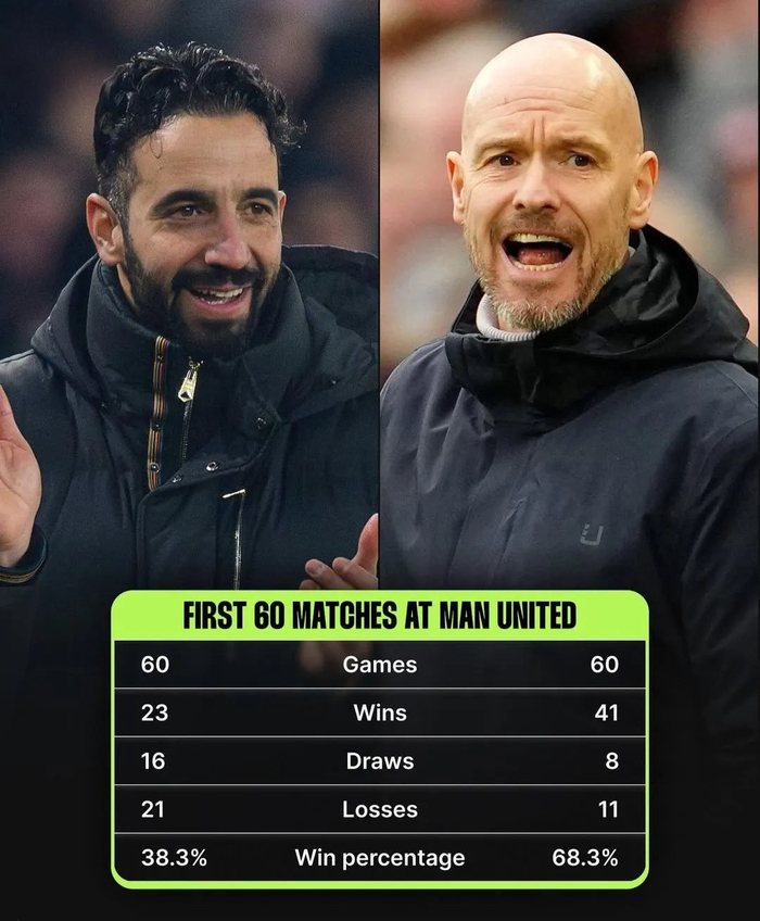 天差地别!阿莫林、滕哈格执教曼联前60场战绩对比出炉👇