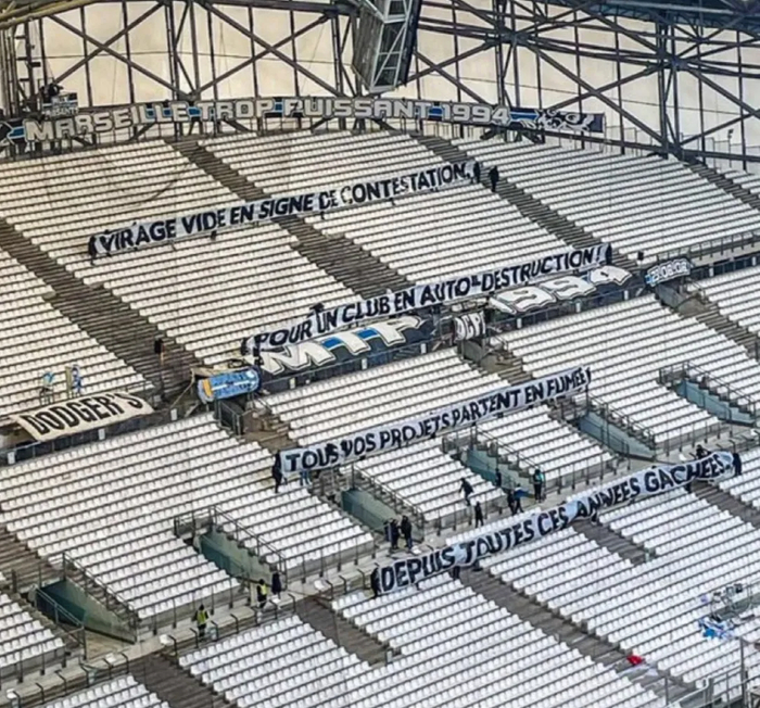 此外本场比赛还遭到了马赛球迷的空场(部分看台)抗议,球迷横幅上写道:“空空如也的看台以示抗议,对于一个自我毁灭的俱乐部而言,你们所有的计划都在这些荒废的岁月中化为泡影”。