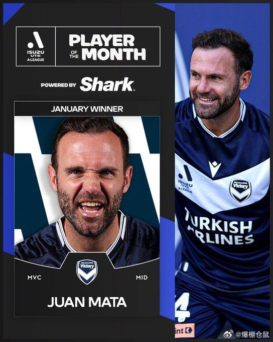 【官方】37岁的墨尔本胜利中场马塔当选澳超1月最佳球员,他在4场比赛中贡献了5次助攻!