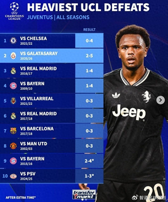 大年初二凌晨,欧冠淘汰赛附加赛首回合的比赛先赛4场,其中尤文图斯2-5惨败给土超球队加拉塔萨雷,此役是尤文图斯欧冠丢球最多的比赛,也是输球第二多的比赛。这战况对于斑马军团以及整个意甲联赛而言是一件非常丢脸的事情。对此德转盘点了尤文图斯在欧冠联赛中的十大“惨案”。