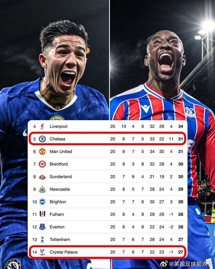 英超第五名和第十四名之间只差四分🤯#英超联赛#