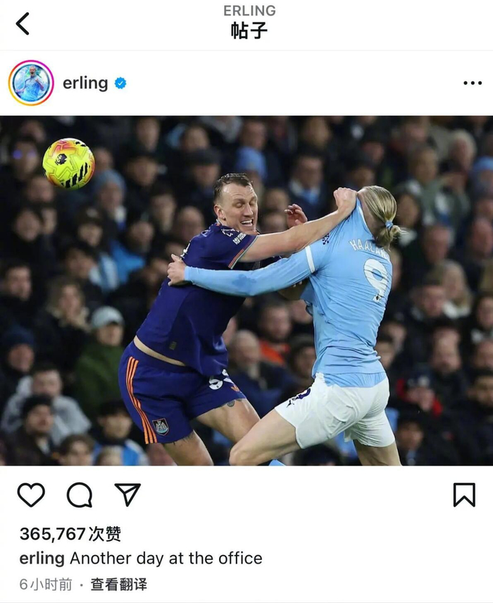 #曼城2比1纽卡斯尔# 本场比赛,哈兰德贡献助攻。赛后,这位挪威前锋更新了Instagram,发布了自己与丹-伯恩贴身肉搏的照片:在办公室里的又一天。