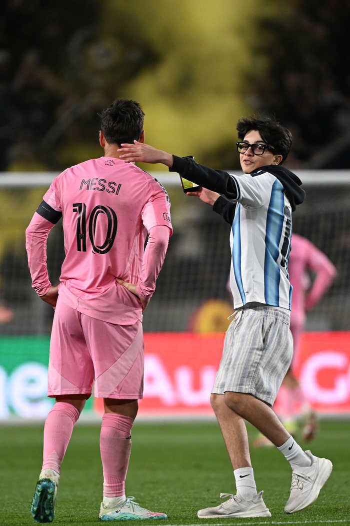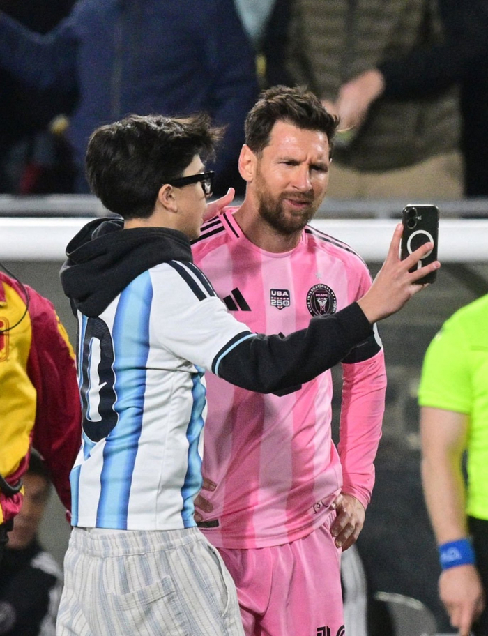 今日梅西与冲进球场的球迷合影!📸