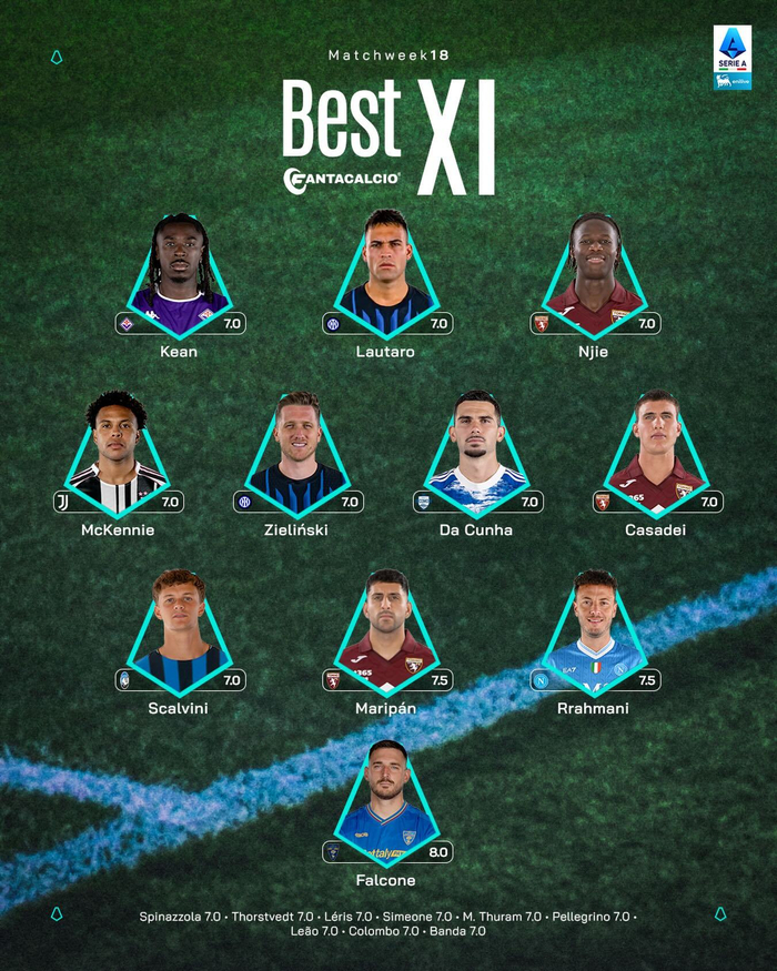 【官方】 2025-26赛季#意甲联赛# 第18轮最佳阵容。