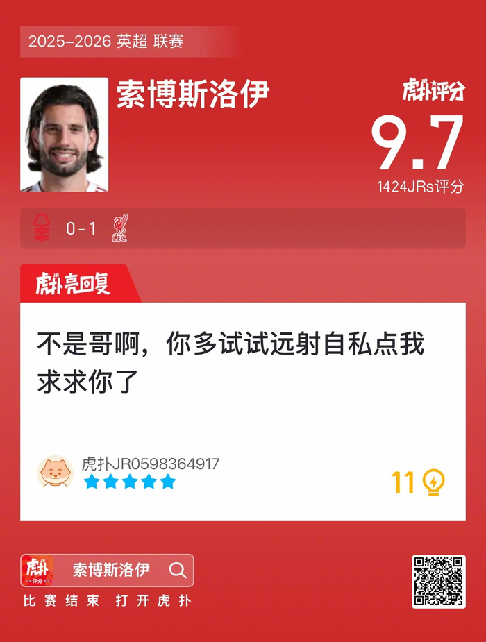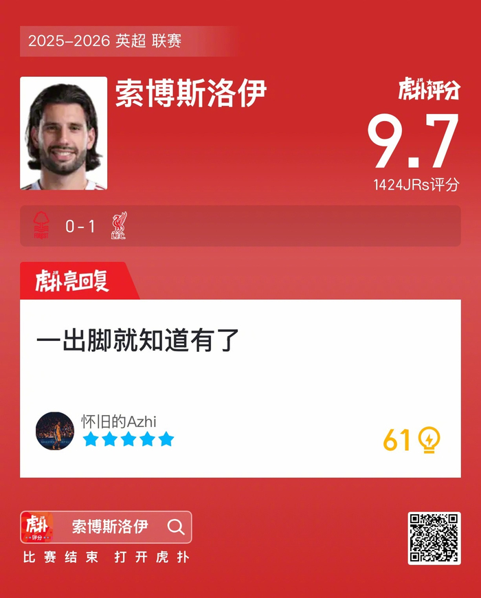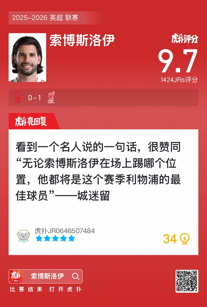 #诺丁汉森林0比1利物浦#索博斯洛伊这场发挥如何?