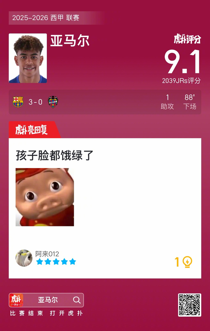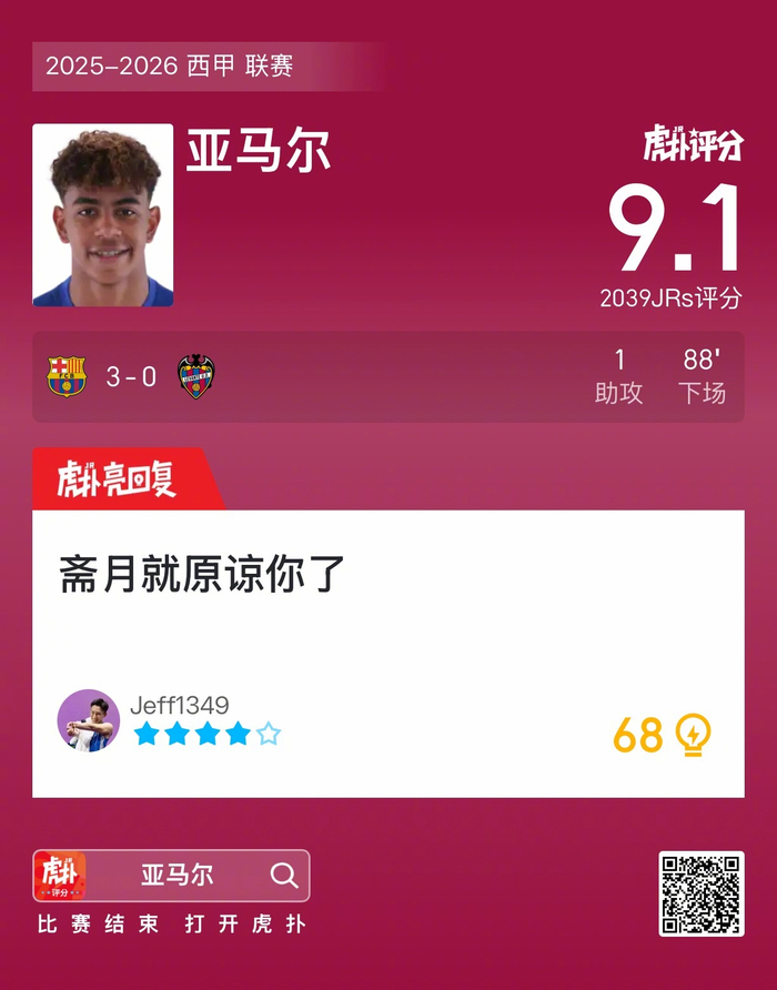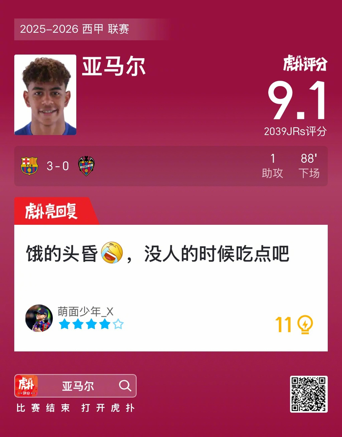 #巴萨3比0莱万特#亚马尔贡献一次助攻,这表现你们给几分?