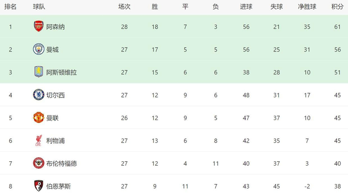 值得一提的是,要是阿森纳能战胜切尔西,也将影响争四的格局。在积分榜上,切尔西、曼联和利物浦同积45分,3队争四已经进入白热化阶段,其中曼联少赛1场,接下来他们将做客对阵埃弗顿,如果保持不败,曼联就将回到前四。