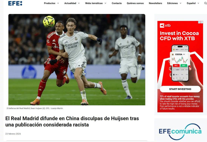 据西班牙官方通讯社埃菲社当地时间2月23日报道,皇马在中国社交平台微博发布了一则声明,内容为球队后卫赫伊森的道歉信息。此前,这名球员在个人Instagram账号上转发了一则被认为含有冒犯亚洲人的内容,引发争议。