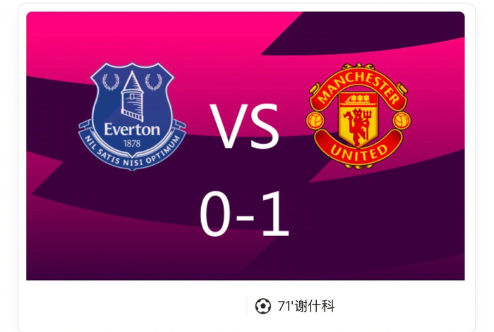战报:#埃弗顿0比1曼联#,姆伯莫助攻谢什科一锤定音!