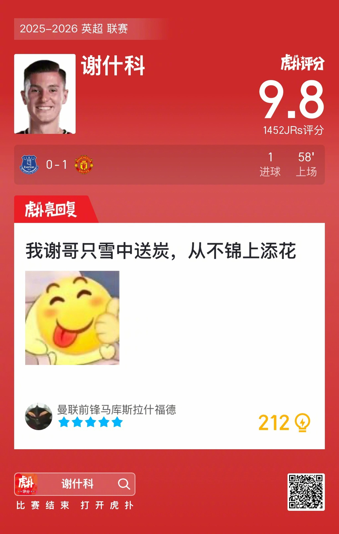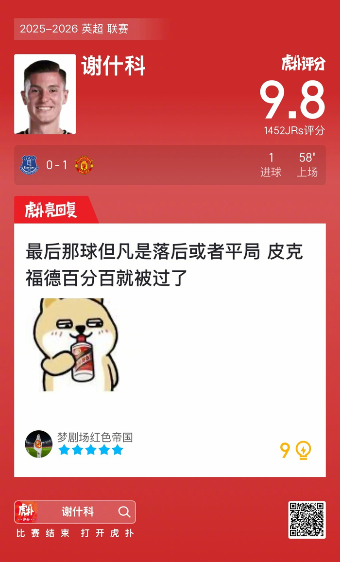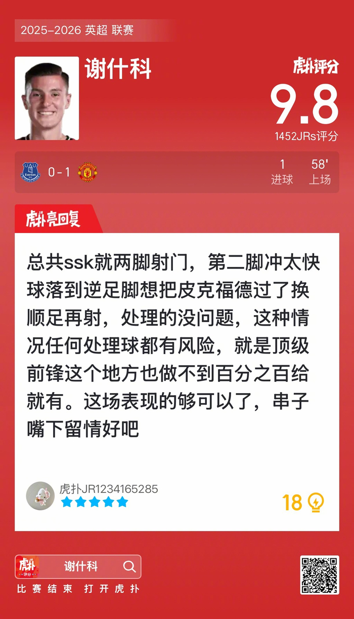 #埃弗顿0比1曼联#谢什科打进一球,这表现你怎么吹?